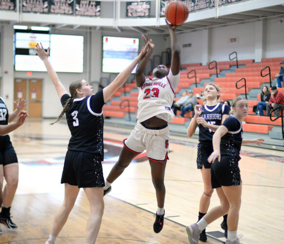 The Weirton Red Hat Sassie Lassies met at Theo Yanni’s in Weirton. Those in attendance were, from left, front, Barb Coburn, Connie Gilbert and ...