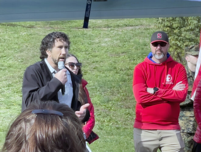 Jason Talkington of the Jefferson Behavioral Health System speaks before the start of Saturday’s Red Ribbon Walk at Jim Wood Park in Steubenville. The annual event has become a centerpiece of Red Ribbon Week. It helps to raise awareness of drug problems, educate young people about the dangers ...