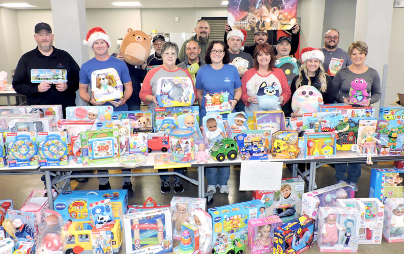 STEUBENVILLE — Managers and workers in the oil and gas industry hustled about a large meeting room at the Jefferson County Board of Developmental Disabilities Thursday, filling tables with dolls, toy cars and other Christmas gifts as they listened to Christmas music.