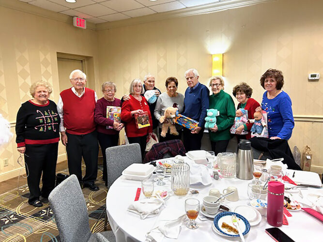 Members of the International Senior Club in Weirton donated to the Toys for Tots program this holiday season. Those taking part in the contribution included, from left, Patty Beltrame, Toni Larosa, Barbara Purks, Nancy Ramsey, Gabe Arlia, Treasurer Norma Henson, Larry Purks, President Regina ...
