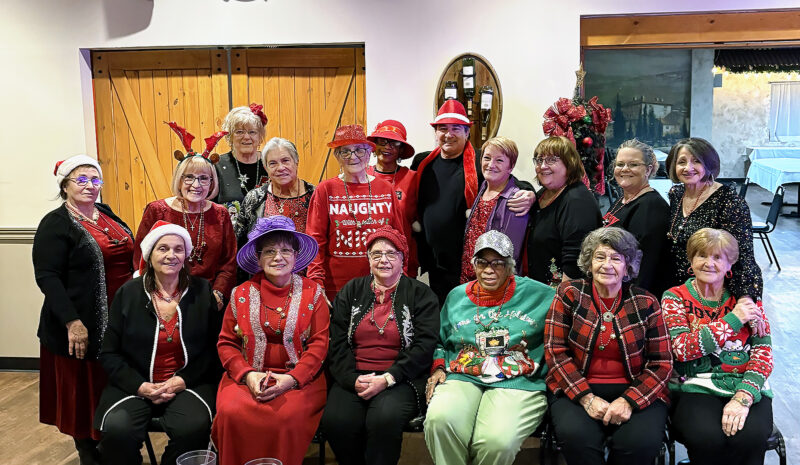 The Red Hats’ La Bonne Vie Chapter held its annual Christmas party Dec. 17 at Scaffidi’s Restaurant and Tavern in Steubenville. Following dinner, members were entertained with a special performance which featured Dave Watkins. Those in attendance included, from left, front, Rose Pulice, ...
