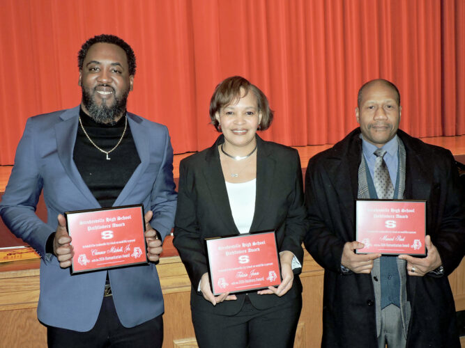 Marge Bedortha, center, a 48-year life member of the Woman’s Club of Steubenville, thanked the management and staff at the Herald-Star for its coverage of the club throughout its 126 years in existence. Bedortha thanked Ross Gallabrese, executive editor of the Herald-Star and The Weirton ...