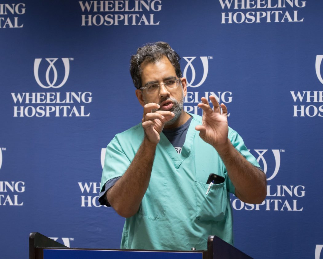 Urologist Dr. Satbir Singh explains the UroLift System, a new minimally invasive prostate procedure being performed at Wheeling Hospital Tuesday. — Linda Comins