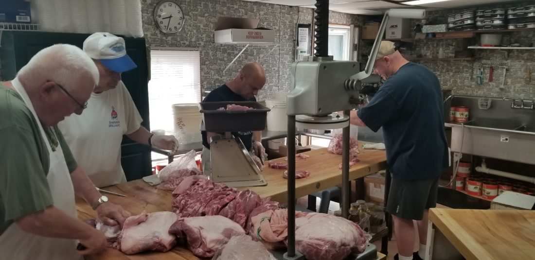 TIME TO MAKE THE SAUSAGE — The crew at Capri Sausage and Meatball Carryout, 1400 University Blvd., was hard at work carving meat to grind into the stuff of local legend — Capri sausage patties. The little shop that has made sausage and meatball sandwiches for carryout, as well as selling sausage to cook, opened in 1972. It’s been featured in an article on the website Only in Your State.com. From left are John Slates, Henry Mieczkowski, Rocco Lopresto and Alfred Carducci. -- Paul Giannamore
