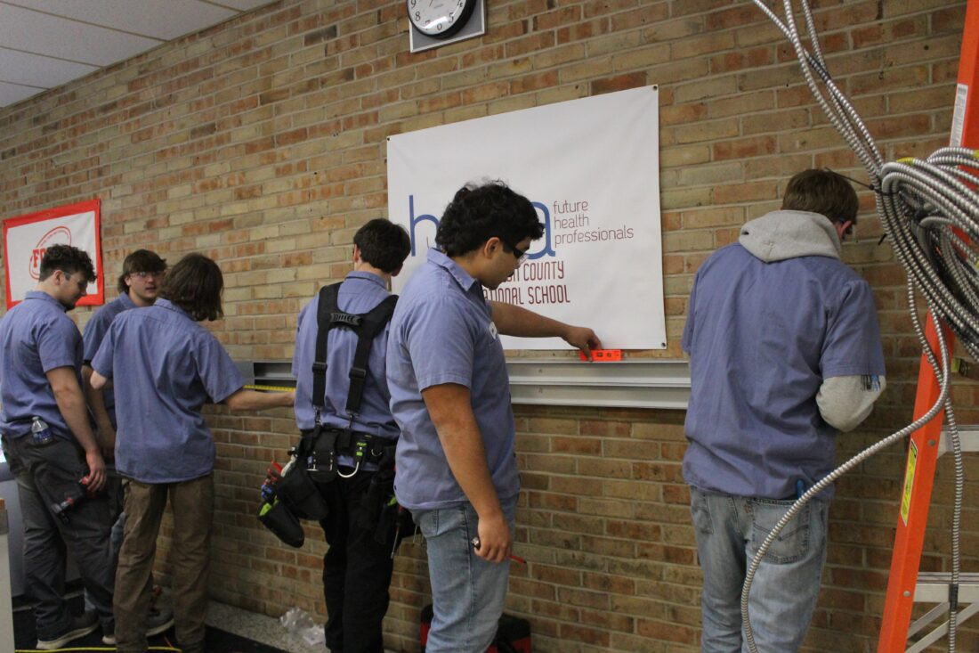 Electrical trades students at the Jefferson County Joint Vocational School did some wiring work near the commons area, adding to their hands-on education. Instructor Buddy Davis said the group installed a receptacle with new circuits and a surface mount raceway to help power the Transition to Work program’s Soaring Eagle Café. (Contributed)