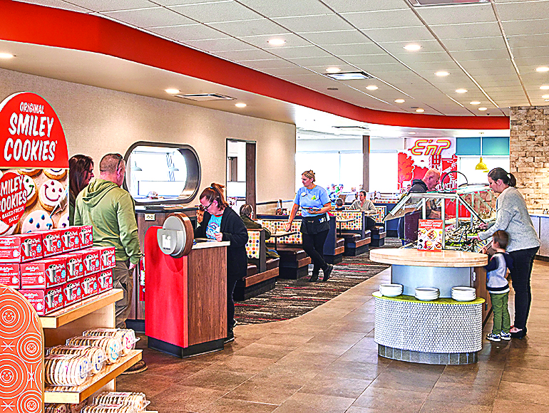 In addition to modern finishes, fixtures, décor and colors throughout the restaurant, a fully remodeled lobby features updated takeout shelves for convenient order pickup alongside a new bakery case. Guests of all ages can now also greet Smiley in the lobby.