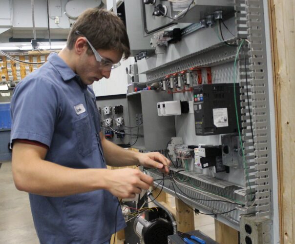 Jacob Gilbo works on logic circuits in his lab at the Jefferson County Joint Vocational School. Seniors in the electrical trades program at the JVS are working with motor control panels in the new labs they built using specifications from instructor Buddy Davis. The students will learn ...