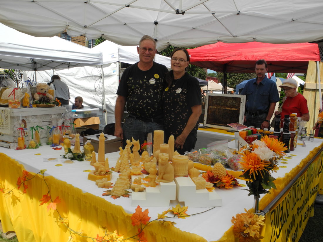 A HONEY OF A BUSINESS — Joe and Suzan Kovaleski of Buena Vista Honey Farms, Steubenville, do more with their bee business than just sell honey in the different flavors of the season. They make honey candy and all types of beeswax candles and molded items as well. Honey can be raised locally or from many of the states that have honey bee production. -- Esther McCoy