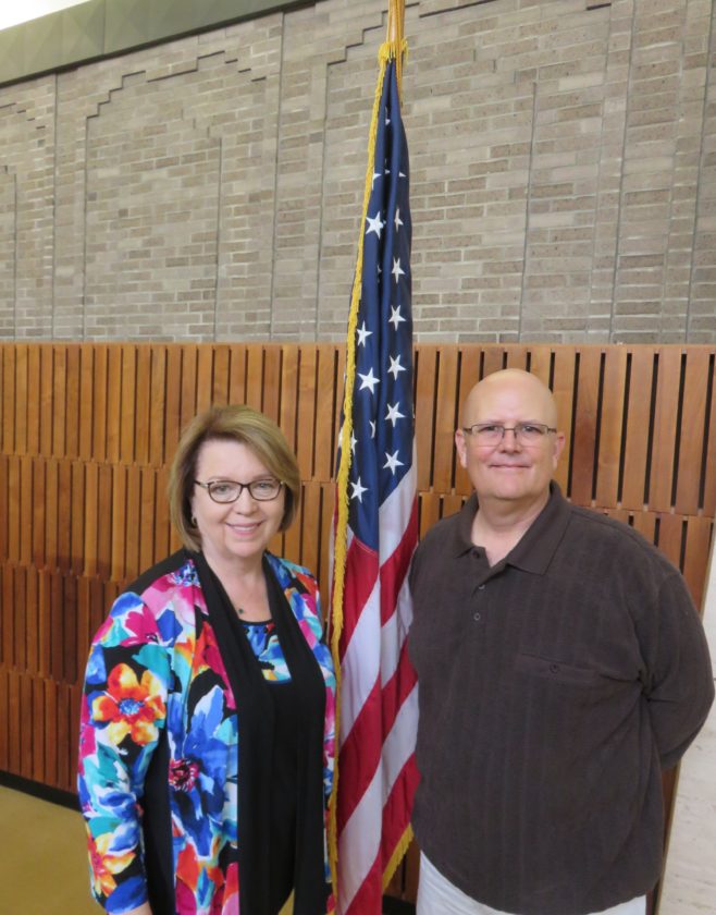 PLANNING OBSERVANCE — Judy Owings, director of the Prime Time Senior Center, 300 Lovers Lane, Steubenville, and Dan Wilson, commander of AMVETS Post 275, met recently to finalize plans for the Welcome Home Vietnam Veterans Day observance that will be held at the center on March 23, beginning at 1 p.m. -- Janice Kiaski