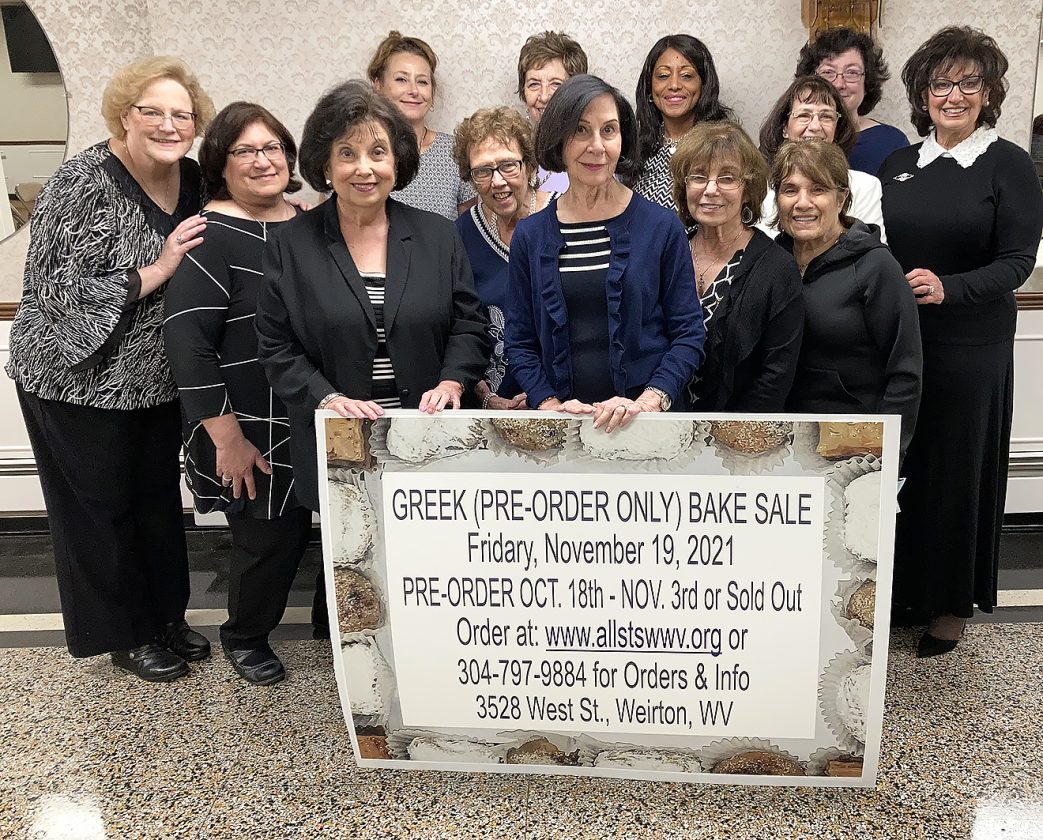 A pre-order-only Greek pastry bake sale is under way by the All Saints Ladies Philootochos Society in Weirton. It features a variety of Greek pastries, including baklava; finikia, honey-dipped cookie with nuts; halva or honey cake; walnut cake filled with nuts and syrup; kourambiethes, powdered butter cookies; apithakia, pear-shaped cookies with nuts and syrup; koulourakia, twist cookies; and chocolate fudge. All pastries this year will be sold in quantities of two. “These are just in time for your Thanksgiving celebration, a spokesperson noted. “Many of these pastries also may be frozen for your Christmas holiday.” Orders will be pre-packaged, and there will be a designated pick-up time when placing orders. The orders may be placed on line at http://allstswww.org or by calling the All Saints Church office at (304) 797-9884. The deadline for orders is Nov. 3 with pick-up at the All Saints Hellenic Memorial Hall on 3628 West St. on Nov. 19. Looking forward to a successful sale are, front row, from left, Grace Madias, Presvytera Cynthia Milanese, Harriet Mastromichalis, Naomi Loucas, Irene Anetakis, Dorothea Stakias and Olga Adams; and back row, Ila Nelson, Effie Mousadis, Selena Antoniou, Argiro Latousakis, Peggy Makricostas and Pearl Tranto.