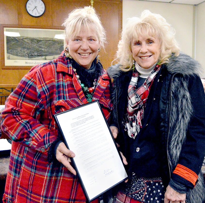 Rebecca Pesta, left, owner of Pesta’s Country Store in Mingo Junction, and family employee Patricia Pesta, were honored with a resolution Dec. 12 by the Mingo Junction Village Council. Village officials recognized the store, which is celebrating its 99th anniversary in business.