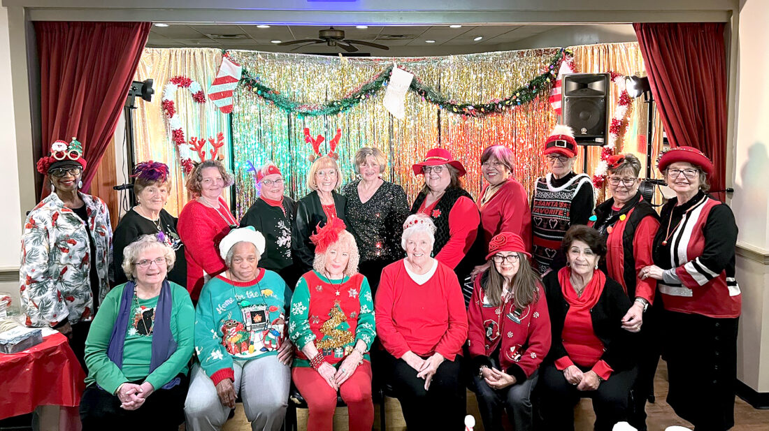 Members of the La Bonne Vie Chapter of the Red Hat Society met at Scaffidi’s Restaurant Dec. 21 for their annual Christmas party. The hostess winners were, Theresa LaMantia, Cindy Misogiane, Joyce Parrish, Kathi Harding, Vicki Nurczyk and Filomena DiCarlantonio. Each member brought a gift card to be donated to the Friendship Room. Entertainment was provided by Dave Watkins. The evening’s highlight was when those in attendance honored Queen Mum Jane Aldridge, the group’s founder and leader during the past 20 years. Aldridge was presented with a gift and cards as a thank-you for all she has done for the chapter. It was announced Aldridge is stepping down from her position as Queen Mum and Vicki Nurczyk and Theresa LaMantia will lead the chapter as co-Queen Mums for 2024. Members attending the celebration included, from left, front, Donna Ivkovich, Pat Butler, Angela Silvida, Aldridge, Yolanda Ayola and Lucia Scaffidi; and back, Terri Jennings, DiCarlantonio, Harding, Ruth Morris, Nurczyk, LaMantia, Misogiane, Estella Hess, Parrish, Annie Walker and Elaine Wukelic.