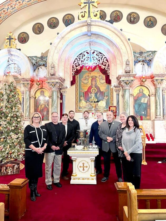 Church officials have announced the members who will be serving on the parish council at Holy Trinity Greek Orthodox Church for the 2025 term. This year’s council includes, from left, Tara Mougianis, assistant treasurer; Dr. Niko Mastros; Nick Riley, vice president; Nick Vogagis; the Rev. Yanni Verginis; Nick Demitras, secretary; Anthony Mougianis, president; Rikki Kamarados, treasurer; and Maria Matzorkis, assistant treasurer. James Petrides also will serve on the council.