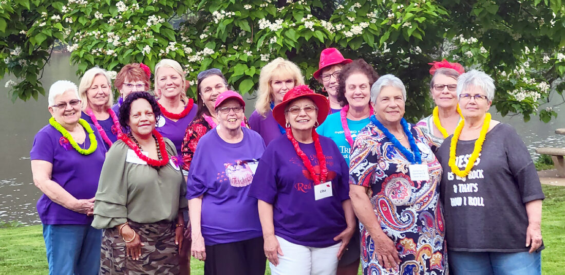 The Moulin Rouge Red Hat group enjoyed a picnic at Newburgh Landing in Toronto on Thursday afternoon. Those taking part included, from left, front, Wa Cella Hayden, Ruthie Cottis, Elba Hada, Joanna Magnone and Debbie Hemshrodt; and back, Barb Hemshrodt, Kathy Sivert, Marcella Miller, April Baccus, Rosa Pulice, Linda Costello, Rebecca Jones, Pam Defalco and Sharon Grim.
