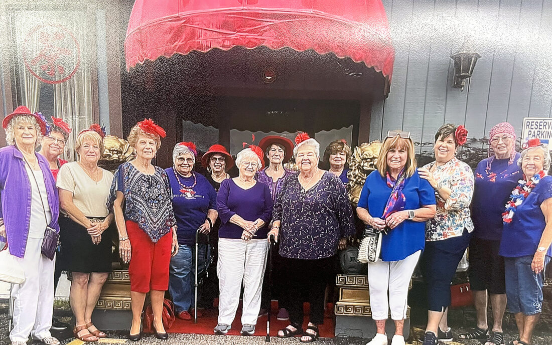 The Weirton Red Hat Sassie Lassies met at the Sesame Grille in Steubenville for a day of socializing, camaraderie and sharing memories. Among those attending were, from left, Martha Varitek, Margie Lemasters, Judith Mikula, Diane Pastoric, Marge Phillips, Carla Colson, Linda Walter, Queen Ruth Dalesandri, Karen Kuhn, Brenda Edwards, Kathy Griffith, Angela Reinard, Cheryl Kondik and Connie Norwood.