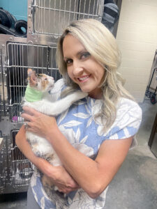 The Jefferson County Humane Society is asking community residents who own cats, to make sure their pets are vaccinated. Within the last few months, three cats have come into the nonprofit that needed an eye removed, including 10-week-old Peek-a-boo, at left, who weighs 3 pounds and is being cared for by Kaelynne Holland. According to Brandi DeNoon-Damewood, at right, JCHS development manager, infections and eye loss are very common in kittens and cats, yet very easy to prevent. Loss of an eye or eyes can result from eye infections, the eye not properly developing or an upper respiratory infection. “This could have been avoided,” Damewood said. “It is so sad but so preventable. Indoor cats need to receive the injection, too. People can carry in viruses from outside and transmit them to their pets. That is how easy this spreads.” Stray cats who do not receive injections, experience eye loss all too often, officials said, noting the humane society can care for strays if they are able to catch them. Owners, however, need to make sure their feline receives the FVRCP vaccine, which can help prevent three highly contagious and life-threatening feline diseases: Feline Viral Rhinotracheitis, Feline Calicivirus and Feline Panleukopenia. By getting the shot that will maybe cost around $25, it will save you money on future vet bills, Damewood said. The injured cat shown at right, was bitten or injured by something or someone and brought in to the humane society, where medical attention was given to help alleviate some of its pain. Both cats, in addition to dozens more, are waiting to be adopted. For information or to adopt or foster, visit the JCHS Facebook page, its website at jeffersoncountyhumanesociety.net or call (740) 314-5583.