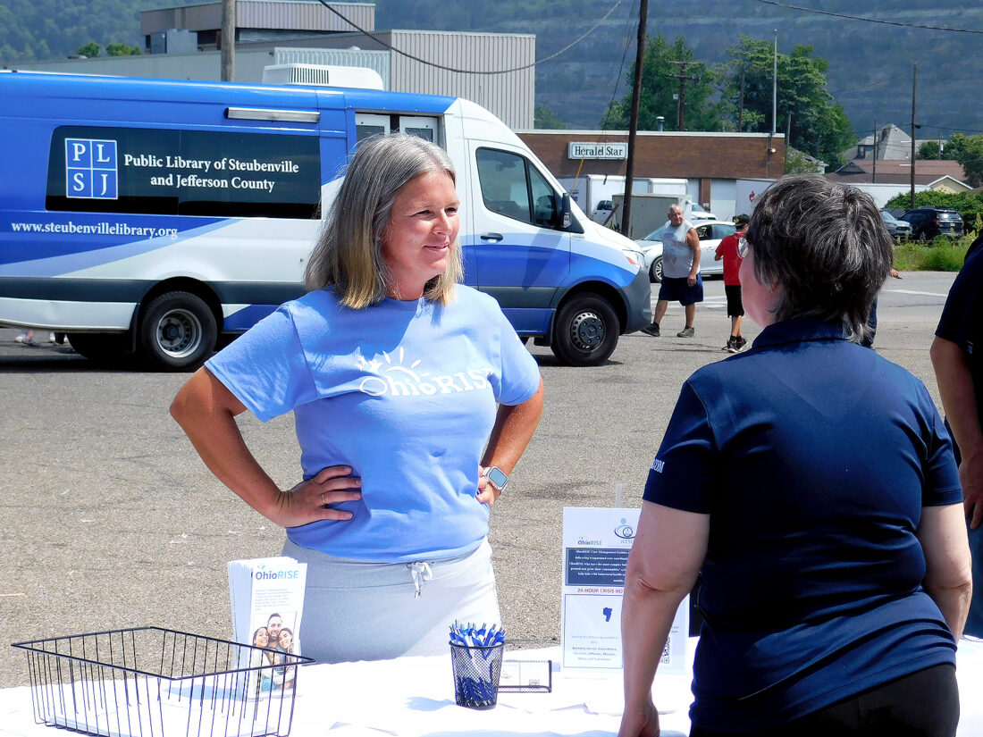 SHOWING SUPPORT — OhioRISE Care Coordinator Vicky Filtz shared information regarding the Jefferson County Educational Service Center’s program during the Urban Mission’s annual Back-to-School Bash on Aug. 14. OhioRISE has become a ready source of community support in Jefferson County. -- Contributed