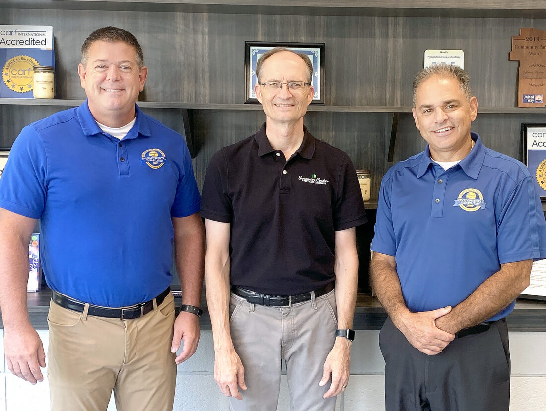JOINING FORCES — The Jefferson County Board of Developmental Disabilities is teaming with the Sycamore Youth Center to create the Sycamore Corps S.C.O.R.E. program, mentoring youth 14 to 18 years of age and helping them to grow and develop. Plans are to integrate the youth, giving them the necessary tools to build relationships and possess employment skills. Taking part in building the program are, from left, Randy Cottis, JCBDD business manager; Bobbyjon Bauman, Sycamore Youth Center executive director; and Michael Zinno, JCBDD superintendent. -- Contributed