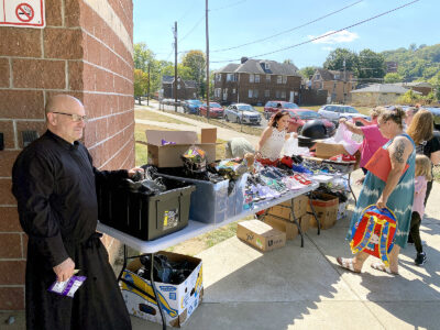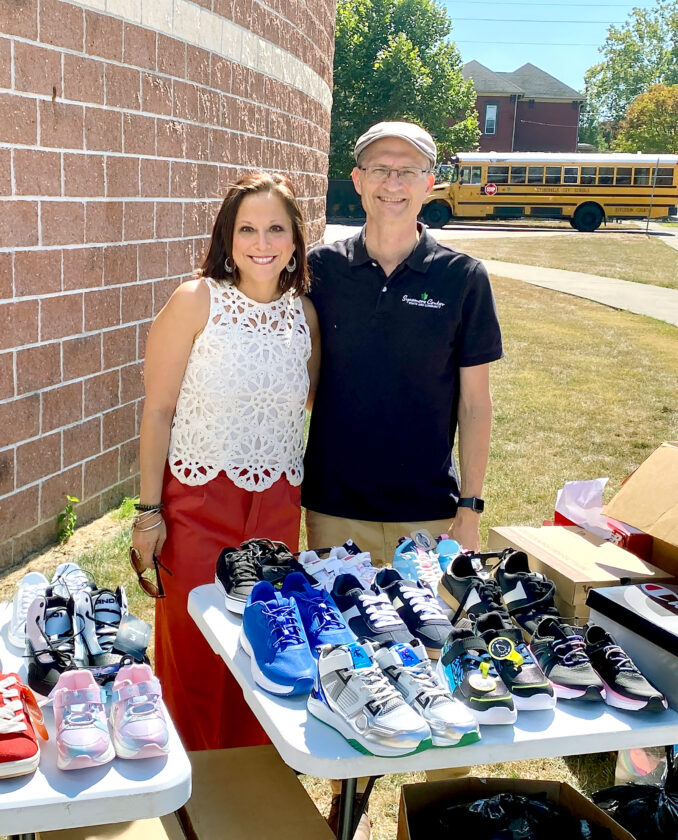 TAKING THAT EXTRA STEP — United Way of Jefferson County Executive Director Marci Snyder-Crawford took that extra step to help the families of students attending East Garfield Elementary School. During the Sycamore Youth Center’s weekly Friday food giveaway, which provides food to the school’s students for the weekend, Snyder-Crawford brought several pairs of new shoes for students the nonprofit had on hand. -- Contributed