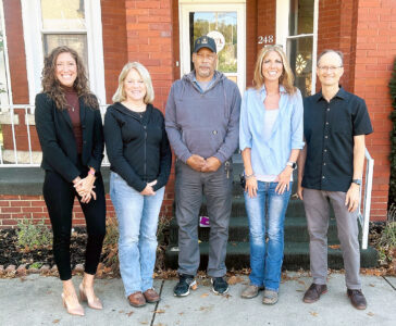 LOCAL VISIT — The Sycamore Youth Center and Aim Women’s Center in Steubenville were visited by officials from Cardinal Operating Co. The purpose of the visit was to see how the company’s community support is making a difference in the lives of others. Those on hand for the meeting included, from left, Rebekah Cohen Morris, executive director, Aim; Melissa Sadlowski, accounting supervisor, Cardinal Operating Co.; Kirk Murray, principal standard work specialist, Cardinal; Bethany Schunn, plant manager, Cardinal; and Bobbyjon Bauman, executive director, Sycamore. -- Contributed
