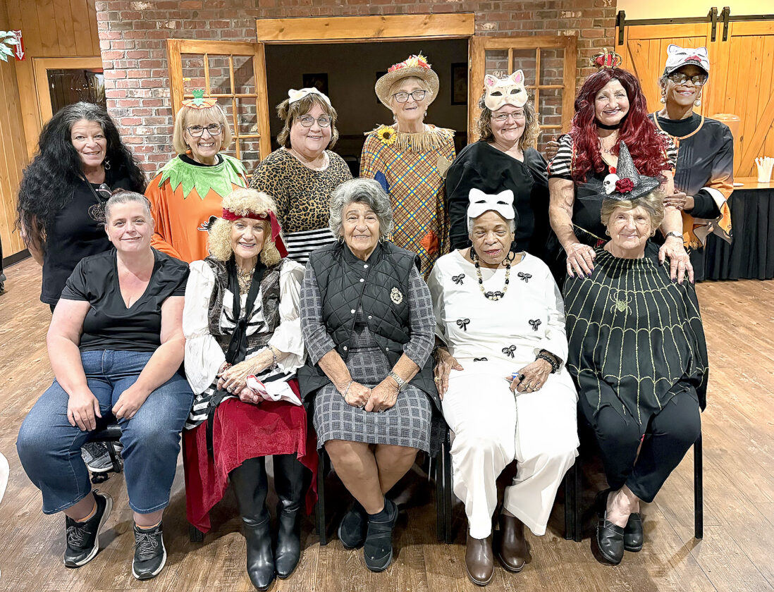 The Red Hat Ladies of the La Bonne Vie Chapter met at Scaffidi’s Restaurant and Tavern for their October meeting. A Halloween party was held, with those in attendance dressing for the occasion. Taking part in the afternoon of food, fun and fellowship were, from left, front, Holly Carmine, Angela Silvidi, Lucia Scaffidi, Patricia Butler and Filomena DiCarlantonio; and back, Kathy Spencer, Vicki Nurczyk, Cindy Misogiane, Joyce Parrish, Kathi Harding, Theresa Lamantia and Terri Jennings.