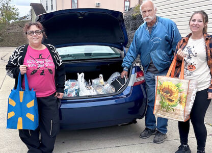 HCARSE GIVES TO NONPROFIT — Members of the Hancock County Association of Retired School Employees donated non-perishable food items to the Community Bread Basket in Weirton as part of its outreach project for October. At left, taking part in the distribution were, from left, Cherie Odell, administrative assistant for the CBB; Jeanie Montgomery, program administrator for the CBB; and Keith Fabianich, CBB volunteer. -- Contributed