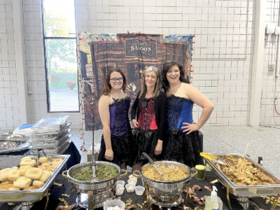 The United Way of Jefferson County’s 29th-annual Taste of Jefferson County event Wednesday featured 17 area eating establishments taking part in the nonprofit’s largest fundraiser of the year. Participants gathered at St. Florian Hall in Wintersville, with some keeping with this year’s theme of “Halloween,” adorning their displays with holiday items and serving portions of their favorite menu items for gusts to sample. In addition, the 11 member agencies the United Way assists were in attendance, informing attendees of their services. Among the restaurants and eateries attending were the Laurels of Steubenville, top, with dietary aide Tracey VanKirk, left, and dietary manager Jamie Maley helping; and Texas Roadhouse, below, using a wild west theme with servers, from left, Kirsten Duggan, Kristin Haines and Tammy Selman.