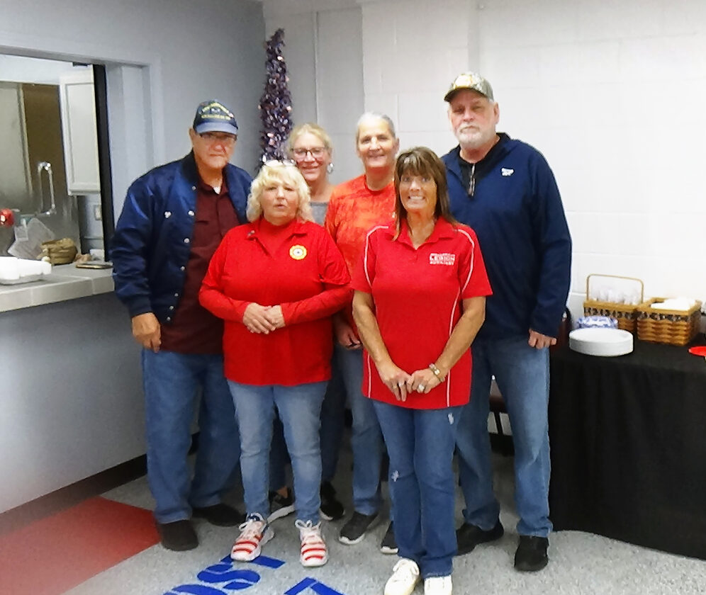 Wintersville’s American Legion Stevens-Christian Post 557 Woman’s Auxiliary hosted its annual breakfast for veterans on Saturday in honor of Veterans Day. Attendees enjoyed a breakfast of eggs, sausage, potatoes, assorted fruits and pastries. Among those in attendance were, from left, front, Carol Morris, auxiliary second vice president and Melissa Cochran, auxiliary president; and back, Barry Bardone, adjutant, Jefferson County Veterans Association; Debbie Travis, sergeant at arms; Beth Harris, auxiliary first vice president; and Todd Harris, second vice commander, Post 557.