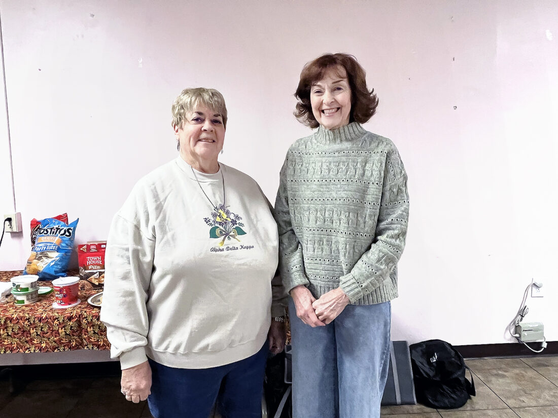 - ALPHA TAU MEETS –– Hostesses included Susan Gracie, left, and Rita Schmitt. Tammy Fields was a hostess for the chapter as well. — Contributed