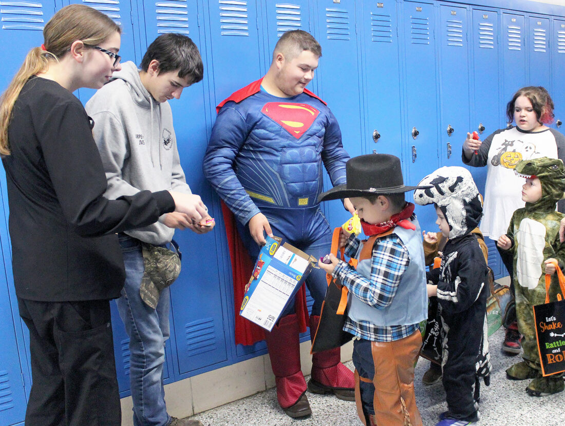 Preschoolers in the early childhood education program at the Jefferson County Vocational School went trick-or-treating in the corridors of the building Thursday. The costumed cuties ranged from Disney characters and dinosaurs to comic book heroes and fairy princesses, collecting candy from the various programs. JVS staff and students dressed for the occasion as well to help celebrate the day. Preschoolers completed their holiday fun with a Halloween party in the ECE classroom.