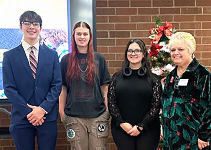 HONORING THOSE WHO HELPED — Officials with Ohio Valley Mutual Aid, along with Weirton resident Jamie Fenske, assisted in helping Wheeling residents following the June 13 flooding. The volunteers were thanked for their contributions during the Fort Steuben Chapter of the Daughters of the American Revolution’s monthly meeting held Nov. 8. On hand for the award presentation were, from left, Secretary Vickie Joseph, Good Citizen Award recipient Fenske and award recipient Vincent De George on behalf of Ohio Valley Mutual Aid. -- Contributed