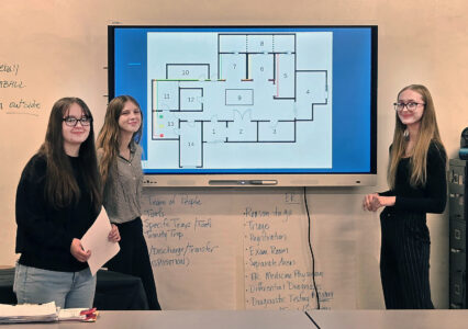“The whole project started with a scenario of when a patient falls ill and comes to an emergency room and then dies in the E.R. while waiting,” Stagani stated. “The students had to come up with a plan for a more efficient emergency room and include a layout, innovation, equipment or software and staffing,” Stagani said. “We had four group presentations that were viewed by teachers, counselors and administrators.”