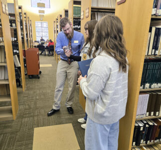 EDISON AT FRANCISCAN — Biomed students toured the St. John Paul II Library and nursing facilities at Franciscan University of Steubenville to gain research for class. Juniors and seniors visited the campus and were shown resources available in the library and toured the nursing building, simulation labs and lecture halls. Reference librarian John Kristine assisted students in their research, while Annie Board was among those at the nursing lab. -- Contributed