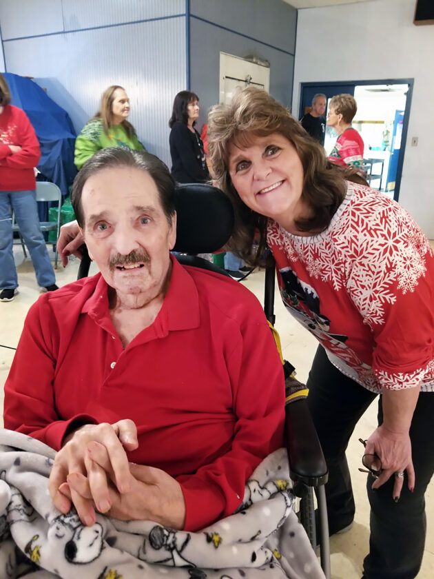 The American Legion Post 33 Ladies Auxiliary in Steubenville held its annual Christmas party for local veterans residing in assisted living facilities on Thursday. Auxiliary President Cindy Longwell is pictured with Bob Giammarco, a Navy veteran and former Legion board member. This marked the first year Giammarco attended the event as an honoree, having moved to Country Club Manor within the past year. Longwell, who previously served as a caregiver for Giammarco, noted how special it was to have him in attendance. Officials stated the event has been ongoing for more than 40 years as a way to let local veterans know the community cares for them. Attendees were treated to a luncheon and presented with gift bags containing pajamas, a blanket, puzzle books and other items to enjoy during the Christmas season.