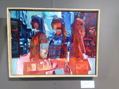 “Clum specializes in cityscape oil paintings, with his art exploring the fragile, shifting moments of urban life — those brief instants when strangers cross paths, light fractures across wet streets and the city becomes a blur of movement and memory,” VanScyoc continued. “His subjects are caught mid-stride, half-seen through reflections, dissolving into color and motion. The figures are rendered not as portraits … but through reflections, and as presences, commuters or passersby suspended between destinations. His use of blurred gesture and vivid atmospheric color evokes the sensation of viewing the city through a moving lens, intimate and anonymous.