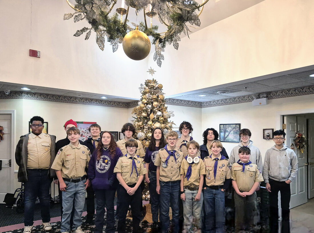 Members of the Weirton Scout Troop 334 visited Serra Manor on Monday. The boys and girls presented nursing home residents with small Christmas trees for each of their rooms. In addition to gift of trees, Scouts entertained many of the manor’s residents with the singing of various Christmas carols.