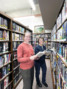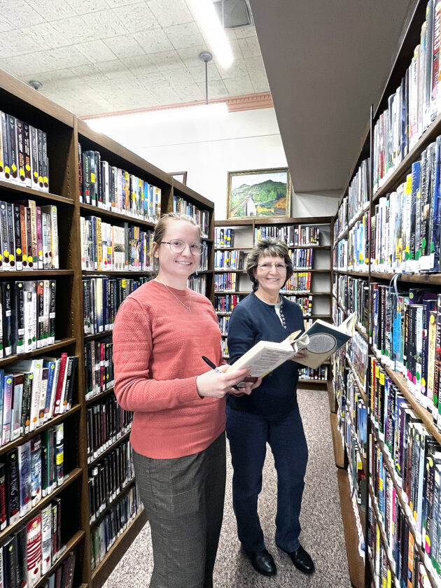 - SERVICE PROJECT — Members of Alpha Tau assisted staff at the Swaney Memorial Library following the group’s January meeting. Those assisting included, Michelle Lewis, left, and Ginger Greene. — Contributed