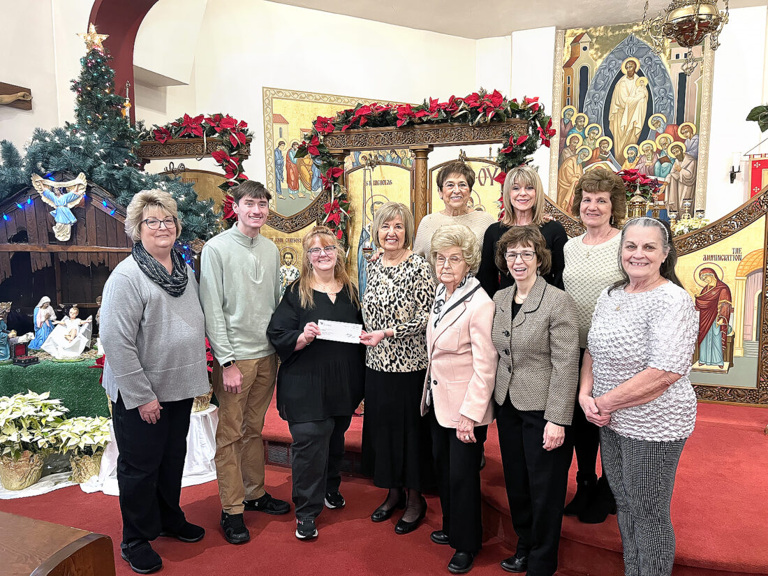 Marilyn and Tommy Charnie, members of the Greek Catholic Union, presented the All Saints Philoptochos Society with a check, awarded through the union’s Community Outreach Program. The Greek Catholic Union is a fraternal benefit society founded in 1892. The nonprofit life insurance company offers competitive insurance and annuity products which funds social activities, community involvement opportunities and other benefits for its members. Marilyn Charnie serves as the current representative and is a licensed agent for the Greek Catholic Union. Those taking part in the check presentation included, from left, front, Debbi Karnoupakis, Tommy Charnie, Marilyn Charnie, Mary Kohelis, Alexandra Melonas, Argiro Latousakis and Iris Banketas; and back, Dianne Kohelis, Stacie Upright and Connie Mastromichalis.
