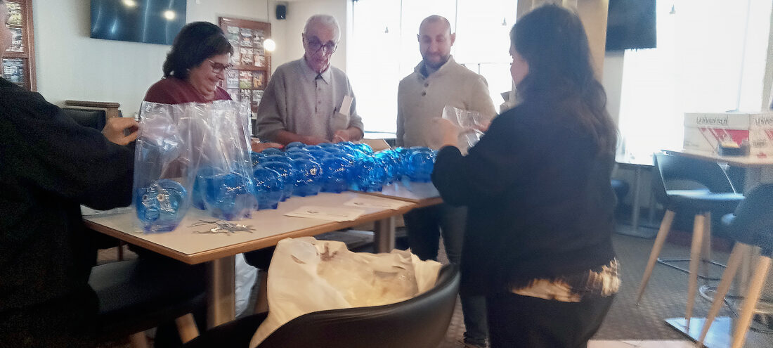 The Weirton Kiwanis Club turned one of its recent meetings into a working activity, as members assembled 300 piggybanks that will be delivered to the Labor and Delivery Deptartment at WVU Medicine Weirton Medical Center. The contribution is done annually by the club and is now in its 10th year for this project. A penny is inserted into each bank, along with a card reading, “May the penny in this piggybank be a first step toward saving for your child’s future education.” When the new mothers depart the hospital, they are given by staff members one of the banks to take home. It is the hope of the club the families will continue to add to the bank throughout the years. Weirton Kiwanis meets at noon every Tuesday at Undo’s restaurant in the Holiday Inn on Three Springs Drive. Among those taking part in the project were, from left, Donna Calvert, Gary Mastromichalis, President Ernie Nicholas and Angie Goettel.