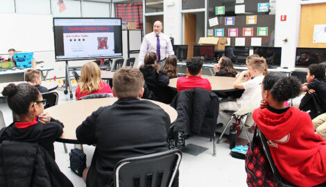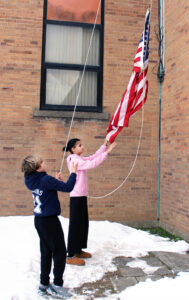 Fourth-graders Teagan Clark, left, and Legacy Wright, raised the American flag as part of the school’s morning routine at Buckeye North Elementary School. Students are trained to perform the task by Deb Gilchrist, chaplain of the Brilliant American Legion Post 573. Volunteers are selected to perform the duty every week, officials stated.