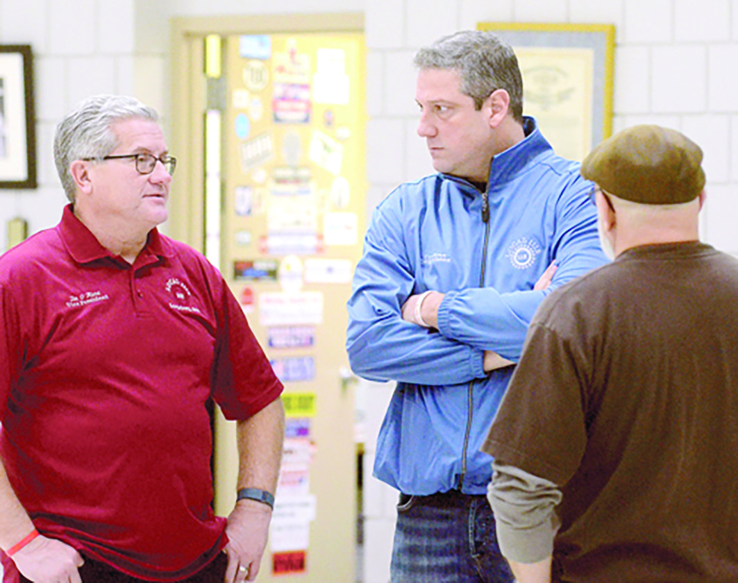 R. Michael Semple FACING CUTS — A visibly upset U.S. Rep. Timothy J. Ryan, D-Howland, center, listens to UAW Local 1112 Vice President Tim O’Hara, left, and Local 1112 recording secretary Michael A. Aurillo following the announcement Monday from GM concerning the closure of the Lordstown plant.