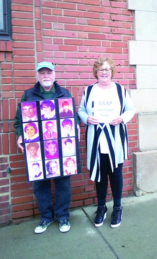 PROTEST — The Survivors of Those Abused by Priests held a protest outside the Diocese of Steubenville offices Thursday. Judy Jones, the S.N.A.P. midwest regional leader, and Steven Spaner, the S.N.A.P. Australian volunteer coordinator, were in Jefferson County to bring attention what they feel is in incomplete list of abusers and insensitive behavior by the diocese. -- Amy Neeley