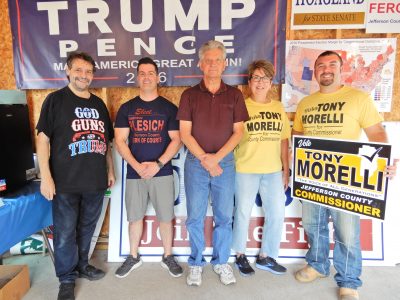 - The Jefferson County Republican and Democratic parties had a presence at this year’s Jefferson County Junior Fair. In this photo, members of the GOP who helped staff the building and provided cookies and treats were, from left, party Chair Matt Parise; Andrew Plesich, candidate for clerk of courts; Todd Barnes; and Colleen Morelli and Mike Morelli, who represented Tony Morelli, candidate for county commissioner.