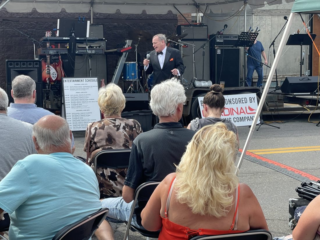 The street entertainment lineup for Saturday begins with Dave Salera: Tribute to Sinatra, 2 p.m.; Bob Morelli: Tribute to Dino, 2:45 p.m.; Flashback, 3:30 p.m.; Chris Denem: Tribute to Neil Diamond, 5:30 p.m.; Michael Angelo: Tribute to 50s, 60s, and 70s, 6:15 p.m.; Honky Tonk Sweethearts, 7 p.m.