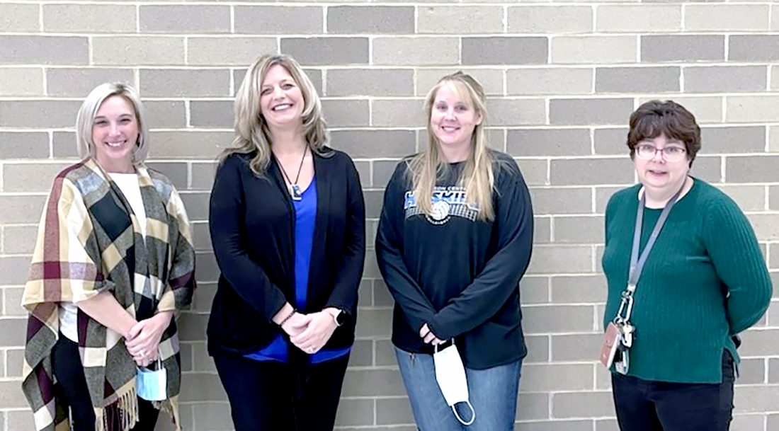 Three Harrison Hills City School District teachers received $600 Best Practice Grants from the Jefferson County Educational Service Center during the Thursday school board meeting. Pictured are, from left, JCESC Director of Special Education Amber Fomenko with educators Alisha Steele, Jaclyn Cottrell and Susan Macenczak. — Contributed