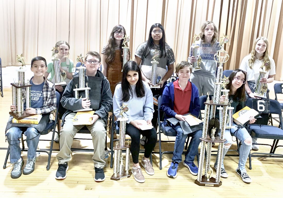 Andrew Grimm THE TOP 10 — The top 10 finishers in Saturday’s 2022 Jefferson-Harrison County Regional Spelling Bee presented by the Herald-Star at Buckeye North Elementary gather after competing. They are, from left, front; Benedict Gan, third place, Ohio Virtual Academy; Cole Carey, fourth place, Harding Middle School; Isabella Fletcher, second place, Harding Middle School; Andrew Macdonald, winner, Bishop John King Mussio Junior High; Jocelyn Saltsman, fifth place, Jefferson County Christian School; back, Learynn Hanson, seventh place, John Gregg Elementary; Ava Mizak, sixth place, Bishop John King Mussio Junior High; Kylie Moffat, eighth place, Bishop John King Mussio Junior High; Tyler Dolecki, 10th, Harrison Central Junior-Senior High School; and Brynn Donnelly, Toronto Junior-Senior High School.