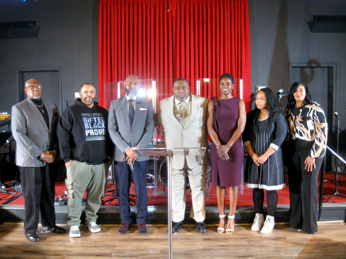 INAUGURATION — After being inaugurated as president of the Steubenville branch of the NAACP, Michael Jett administered oaths of office to its executive committee, which includes Steve Wilson chairman; outgoing president Michael McIntyre, Michael Hayden, Ariane Robinson, Eliza Kelley, Iris Wilson and Kevin Terry. -- Warren Scott