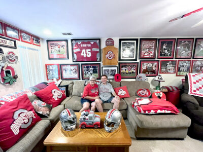 Whatever the reasoning, one thing is certain — theirs is a story about both family and togetherness. When Warren married his wife, Beth Rupert, 15 years ago, most of his Ohio State items were in storage. Placed in either totes or boxes and not out on display where they could be admired and cherished.
