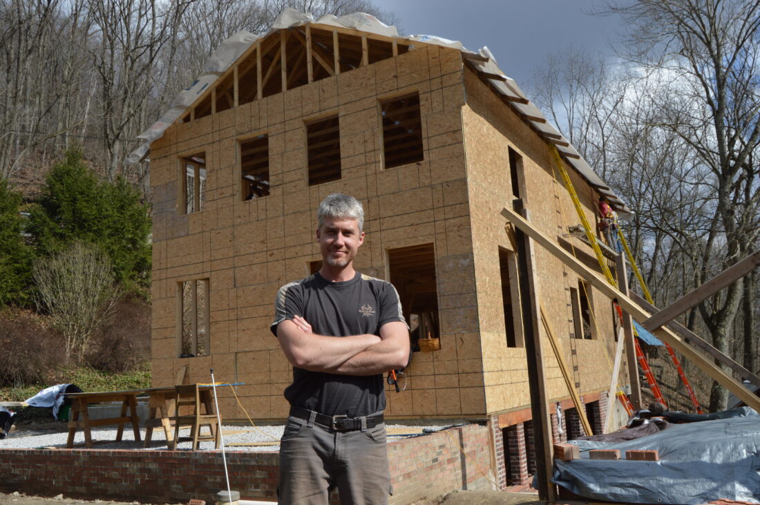 With plans drawn by Luke Dougherty’s brother, a University of Notre Dame architecture graduate, the home will include a timber-framed first floor, an open patio and a central masonry heater. On March 5, Dougherty said the work-in-progress home was set to have its walls fully enclosed within days.
