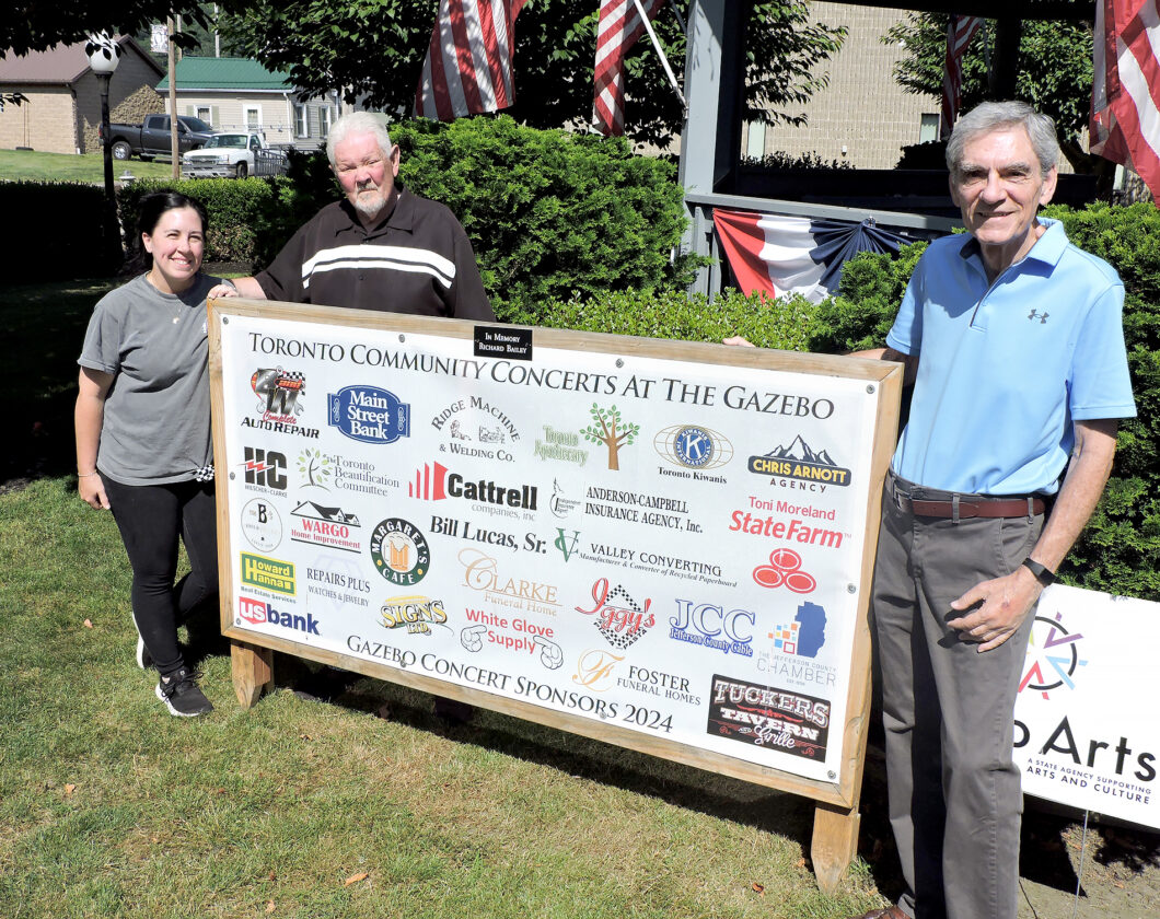 MORE MUSIC AHEAD — Several free concerts featuring a variety of musical acts will again be offered at Toronto’s Gazebo Commons thanks to the efforts of the Toronto Coalition for Revitalization, including George Komar, who is moving from the Gem City to be closer to his children and grandchildren. With Komar, center, is Abby Lemasters, who is taking over as the group’s president, and fellow coalition member Jon Greiner. -- Warren Scott